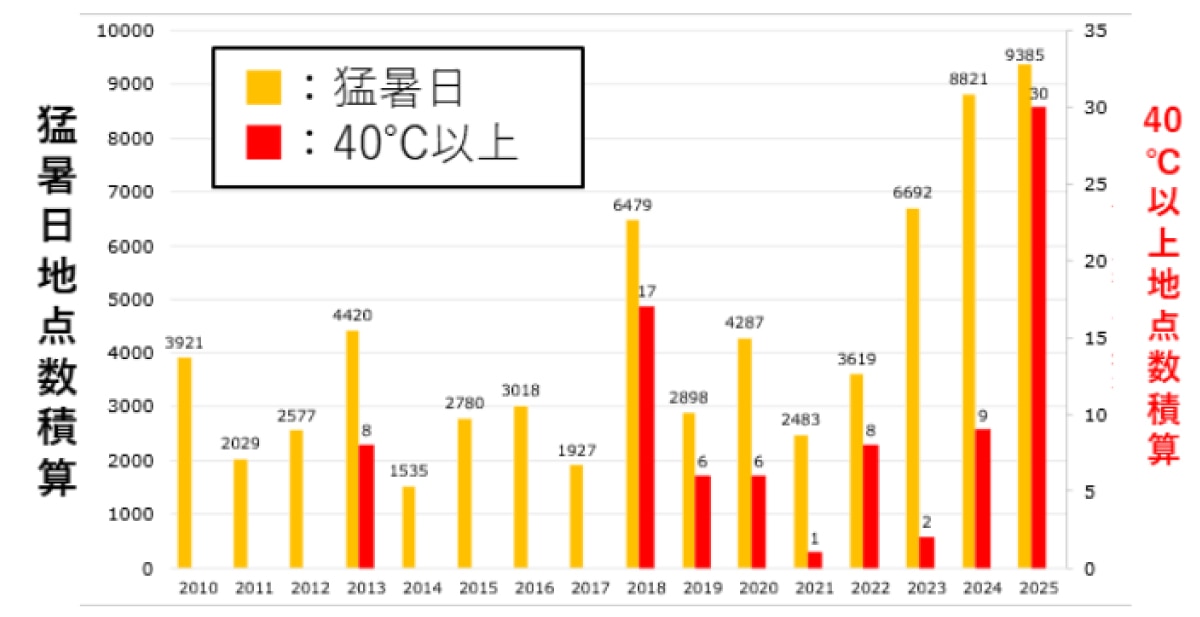 (画像:気象庁 日本の夏(6〜8月)平均気温偏差の経年変化(1898〜2025年)より)