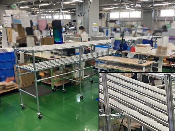 印刷物を搬送するためのシューターを2台ご発注いただきました。お客様のご要望に合わせ、上下2段仕様(4m・6m)の長さ違いのシューターを設計し、部材をご購入いただいたうえで、お客様にて組立作業を実施いただきました。