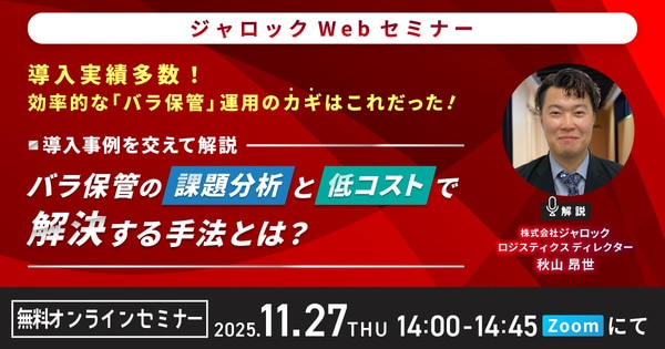 この度ジャロックは、オンラインセミナー『「バラ保管」の課題分析と低コストで解決する手法とは!』 を開催いたします。
