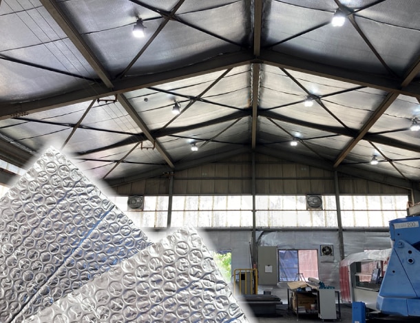 屋根や壁に切って貼るだけで建屋の室温上昇を抑える、断熱塗料や遮熱塗料のような効果のある暑熱対策製品です。