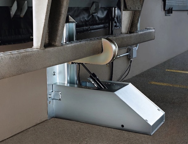 トラックの荷台と倉庫を自動固定