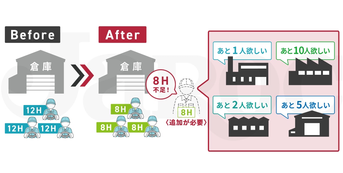 倉庫側から見ても、ドライバーが運転に専念できず、積み込み・荷下ろし作業が原因で他のドライバーの荷待ちが発生したり、配送が遅れたりする状況は大きなデメリットになっています。