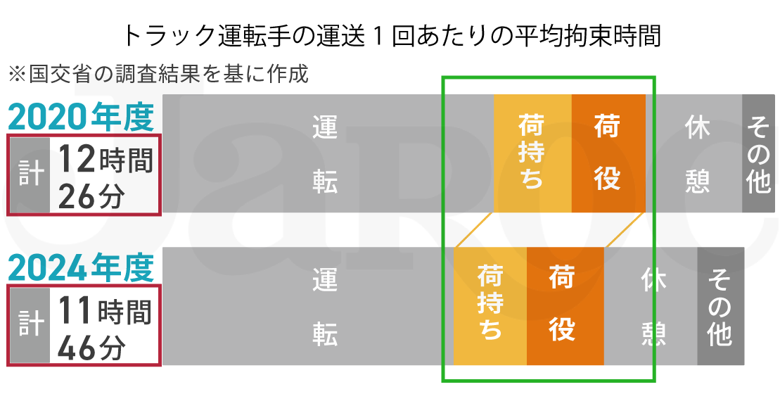 また、それだけではなく、運転以外の時間―「荷待ち・荷役の時間」にメスを入れなければ、拘束時間が減らないということを表しています。
