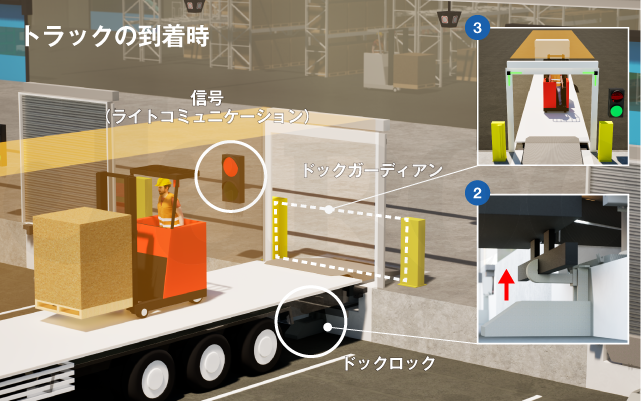 ③倉庫内の作業員がドックガーディアンを開く