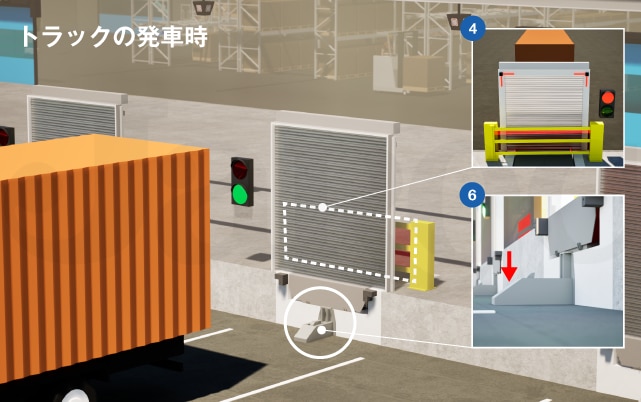 ④倉庫内の作業員がドックガーディアンを閉める