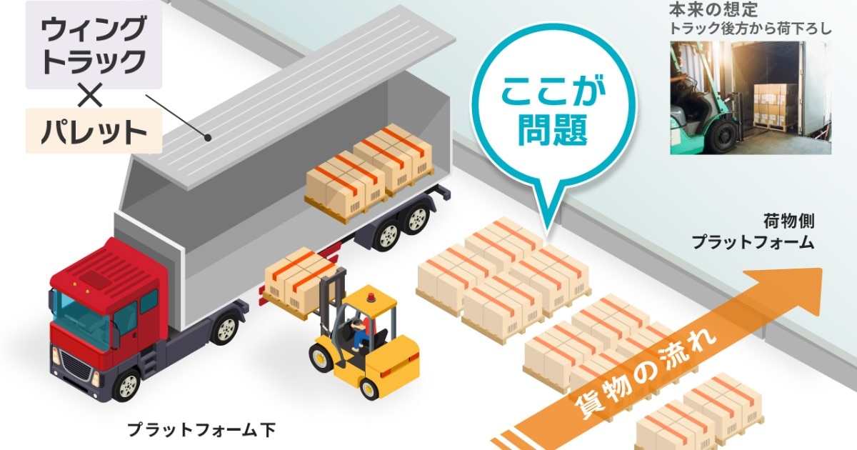 現場によって様々な理由がありますが、一因として、ウイング車と高いプラットフォームの組み合わせで運用している場合、それが要因のひとつに挙げられます。