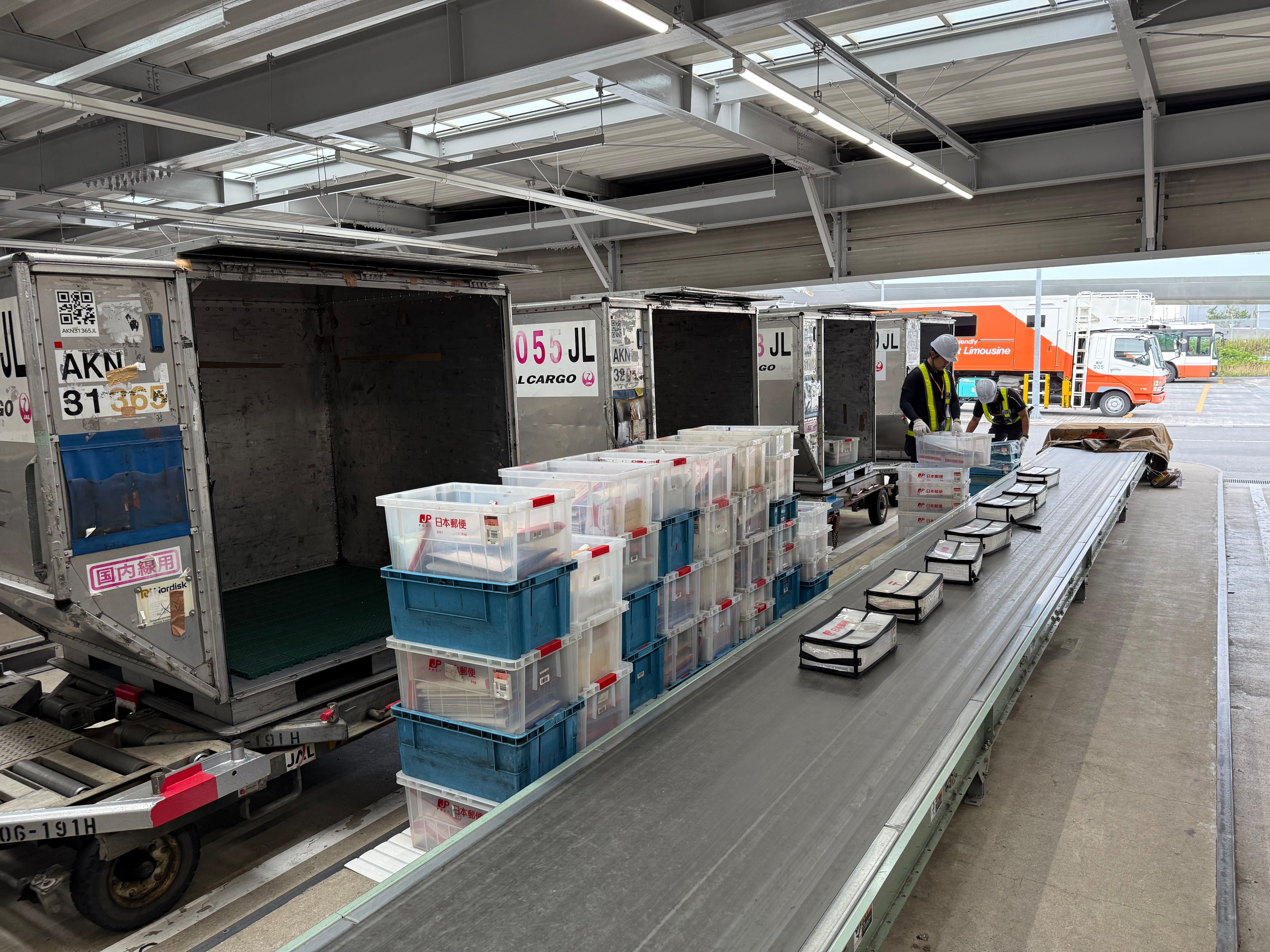 床がアスファルトのため、郵便物を動かすときに1つずつ人力で動かしてしたため、作業負荷が大きかった。