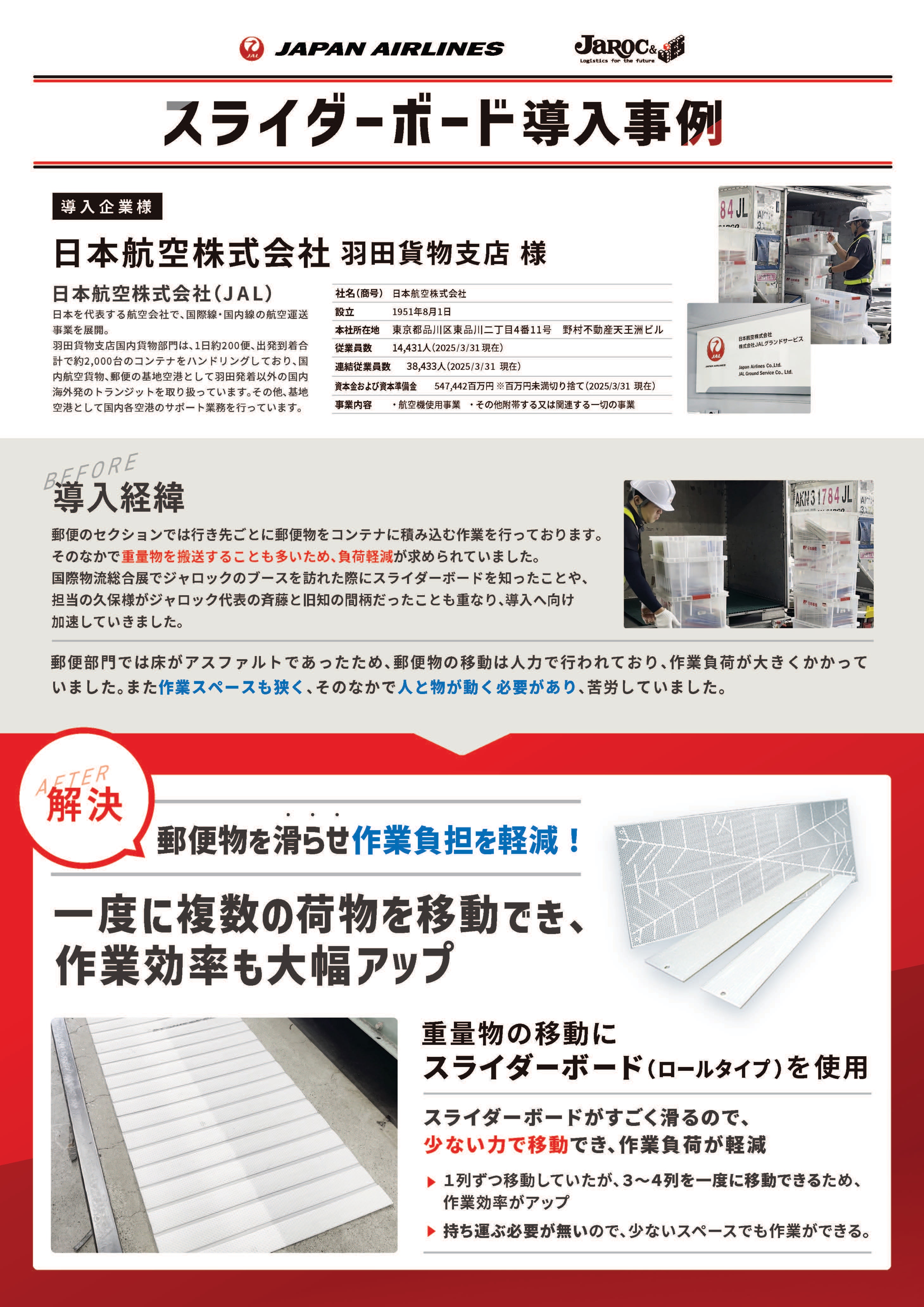 国際物流総合展でジャロックのブースを訪れた際にスライダーボードを知ったことや、担当の久保様がジャロック代表の斉藤と旧知の間柄だったことも重なり、導入へ向け加速していきました。